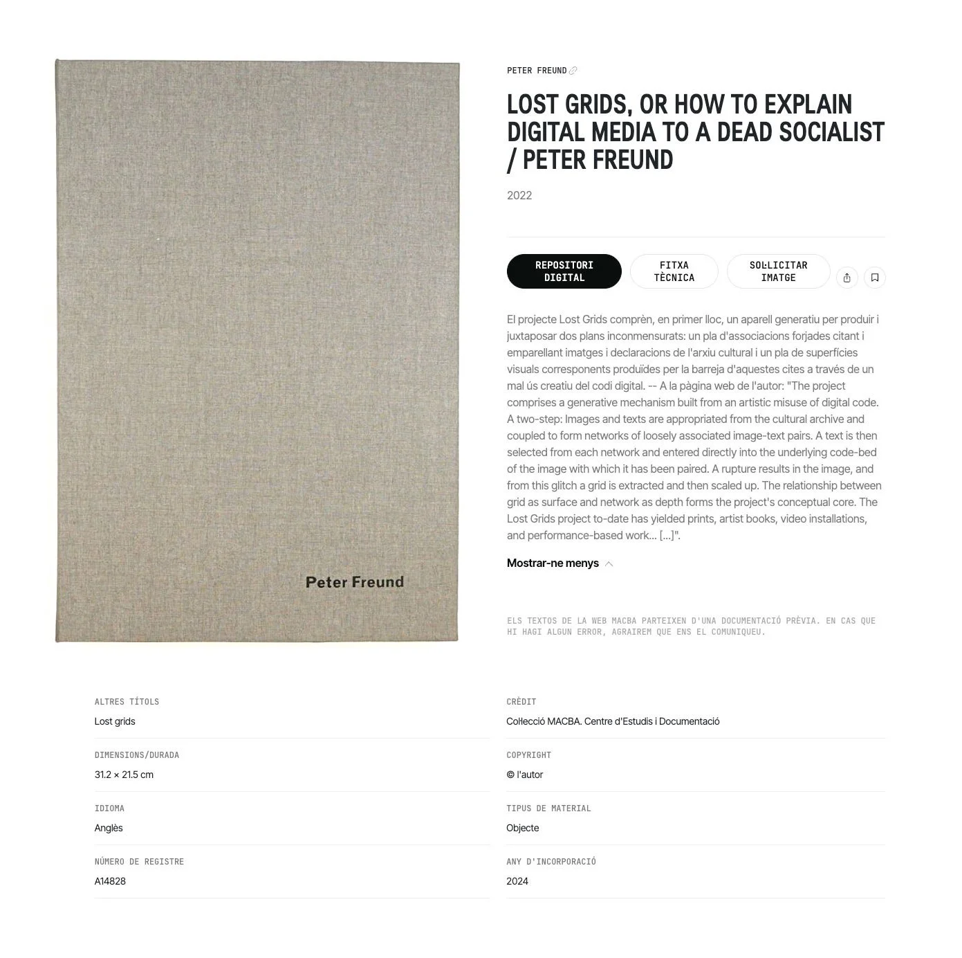 MACBA ARCHIVE Listing