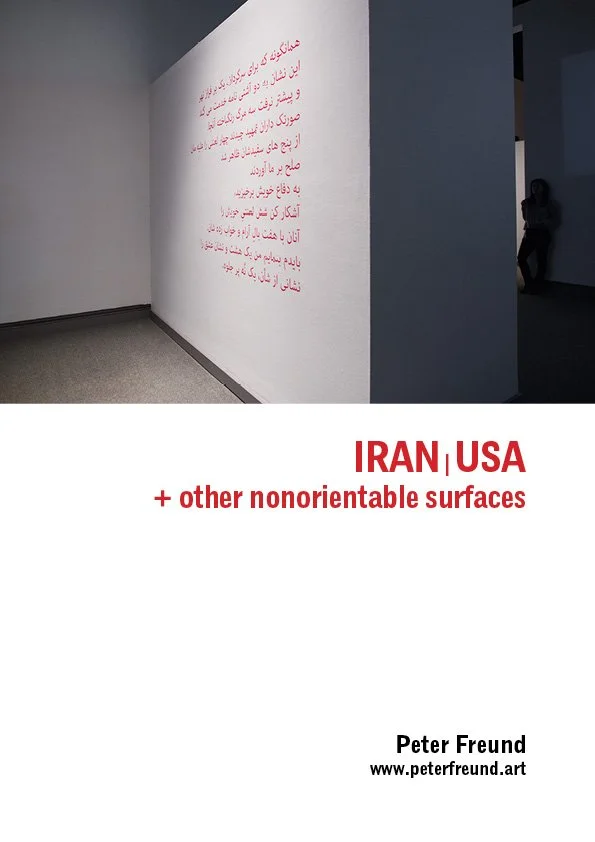 The video trilogy takes an experimentalist approach to the möbius strip topology of the apparent opposition between the USA and Iran. The following links provide information, limited photo documentation, and video previews of the work.